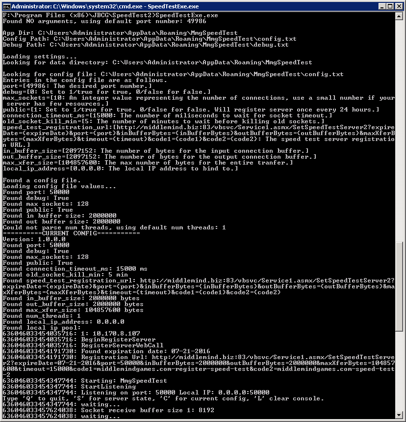Network Speed Test 2.0 Server is a multi threaded asynchronous socket server written in Microsoft .Net for the windows platform.